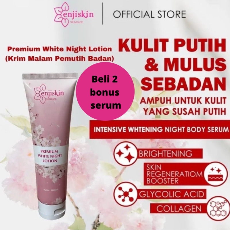 - Lotion Pemutih Badan Premium white NIGHT lotion Enjiskin Krim Malam Pemutih Badan Kojic Acid Retinol Gluthatione Glycolic Acid untuk Kulit Susah Putih