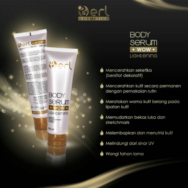 - : B ERL WoW Lightening Body Serum adalah perawatan&perlindungan kulit seluruh tubuh.