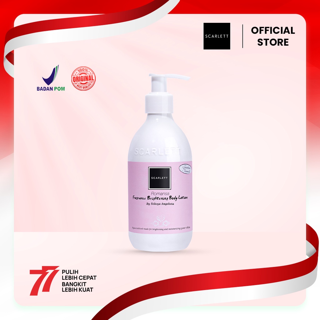 9. SCARLETT WHITENING Body Lotion |Brightening Romansa Fantasia charming freshy Felicya Angelista jolly happy series body cream body serum sabun lulur lotionId produk: 3309536224Harga mulai dari: Rp. 52000 (*Harga sewaktu-waktu dapat berubah) | |